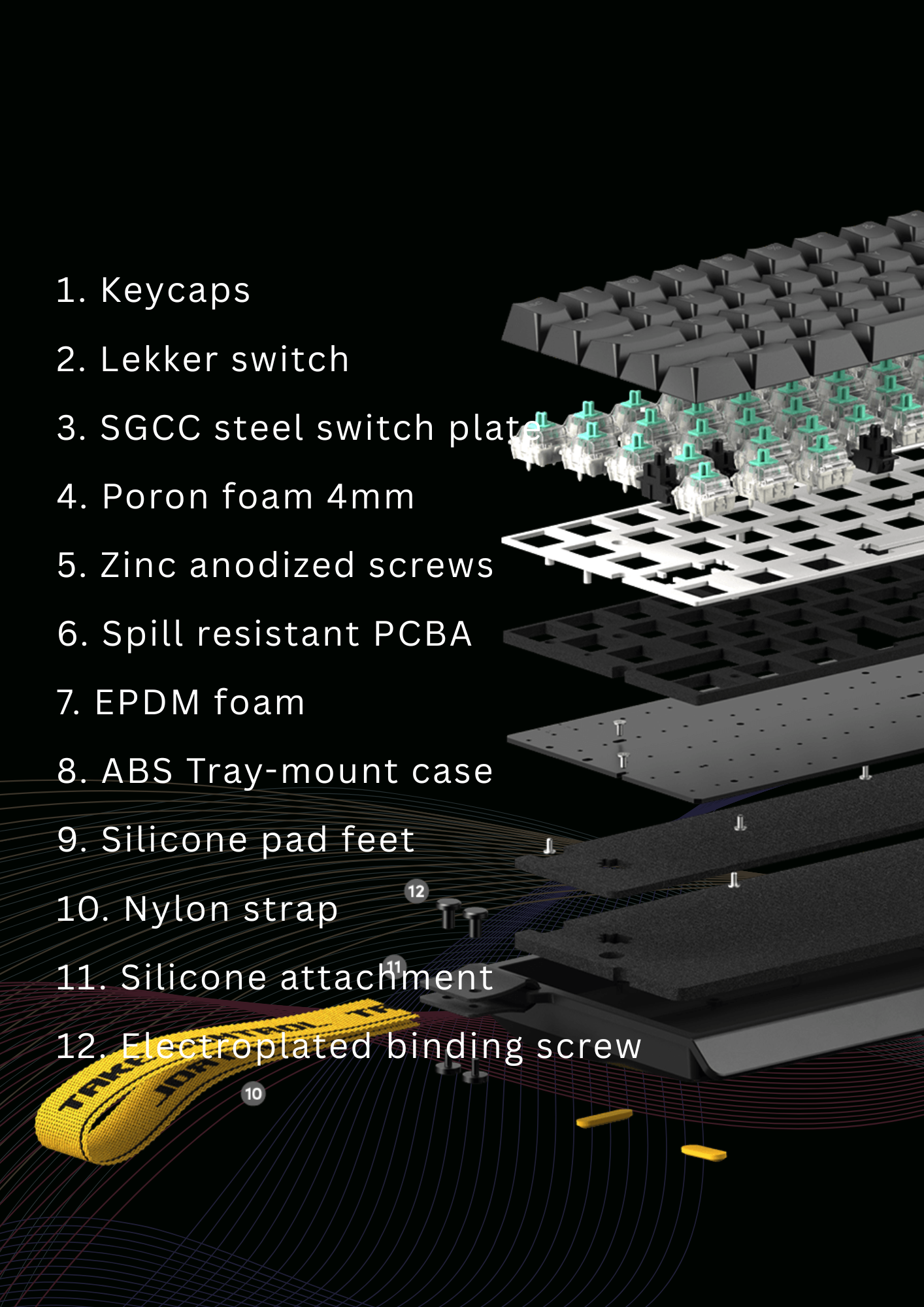 يمنحك نقطة تشغيل مخصصة تصل إلى 0.1 ملم حرية ضبط استجابتك حسب أسلوب اللعب أو الكتابة، بينما يقدم تصميم الـ 60% المدمج لوحة خفيفة، عملية، وتمنح مساحة أكبر لحركة الماوس.