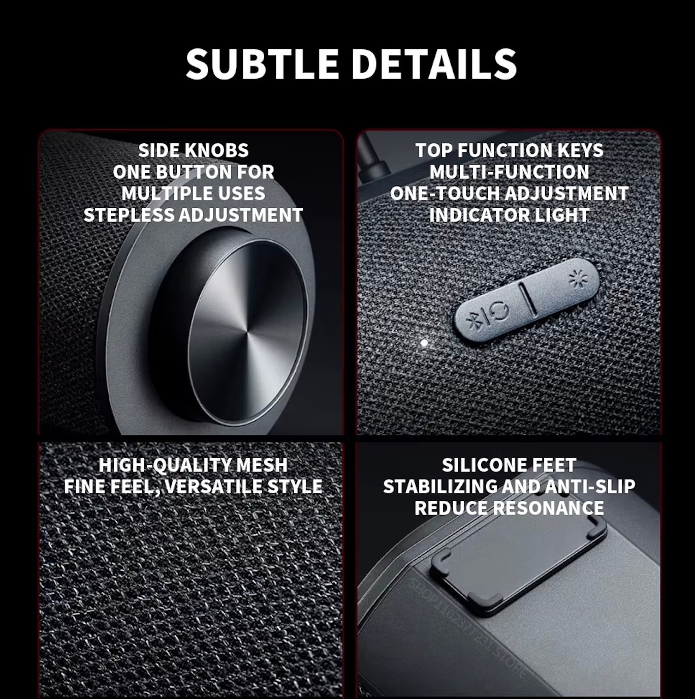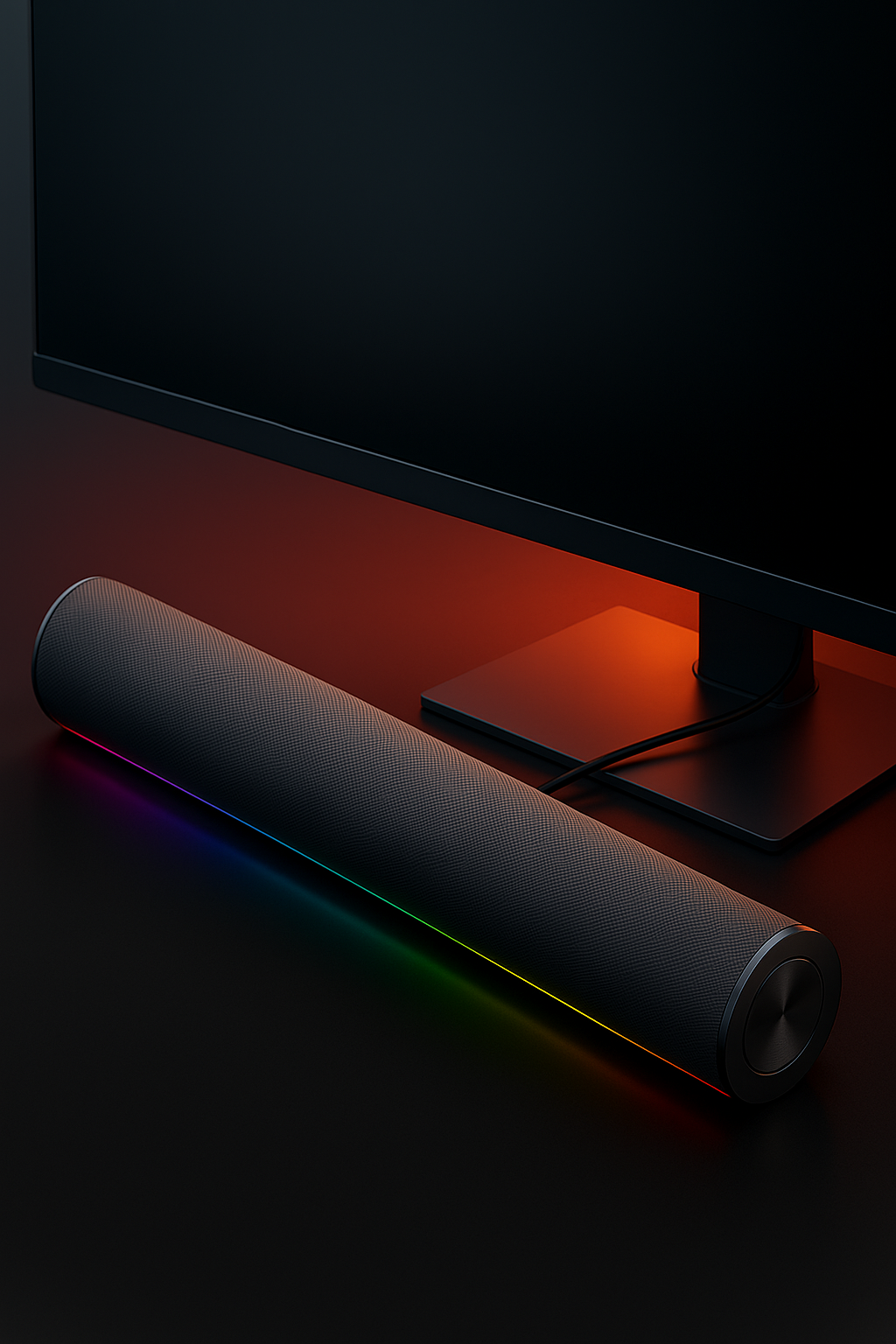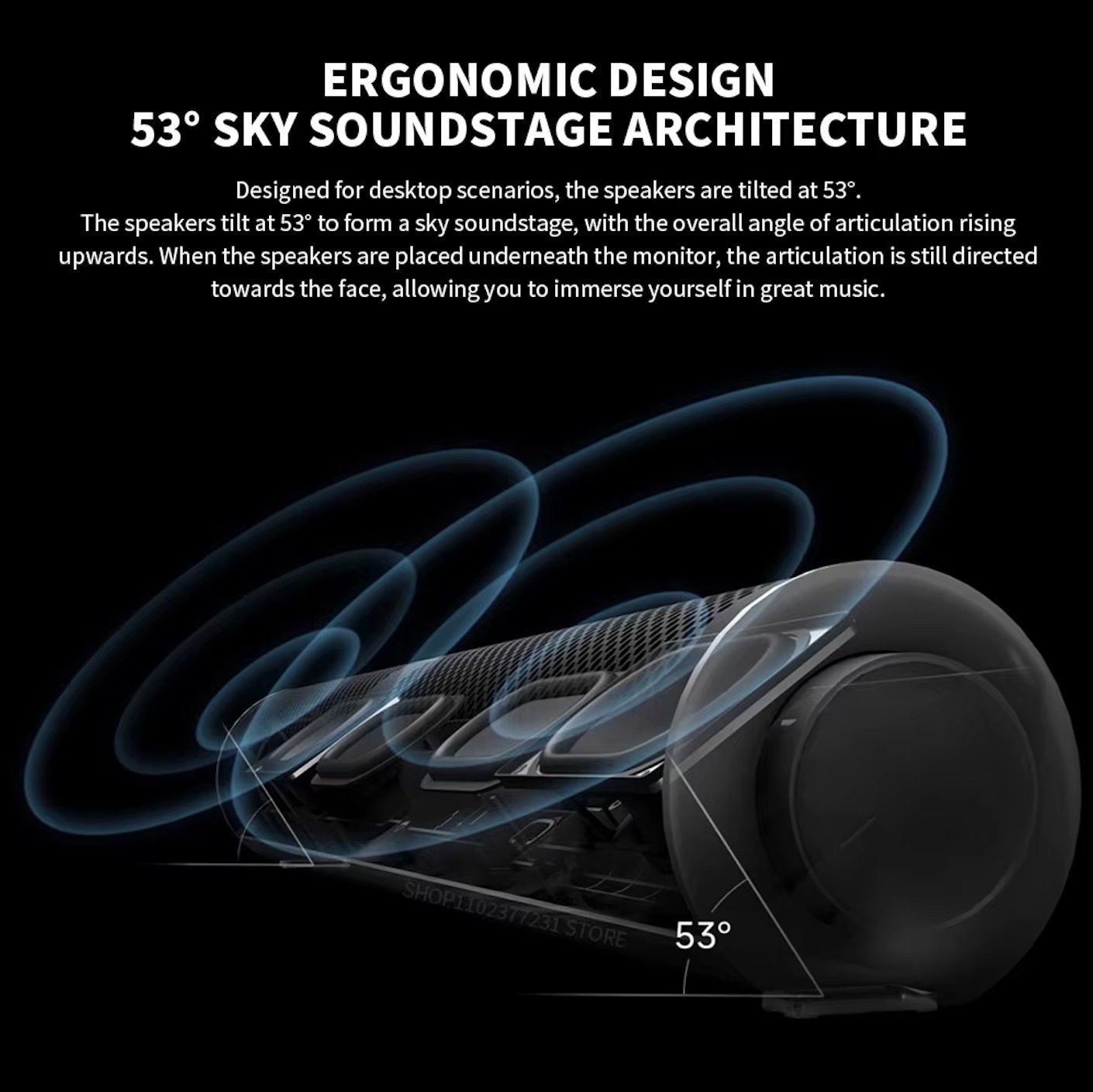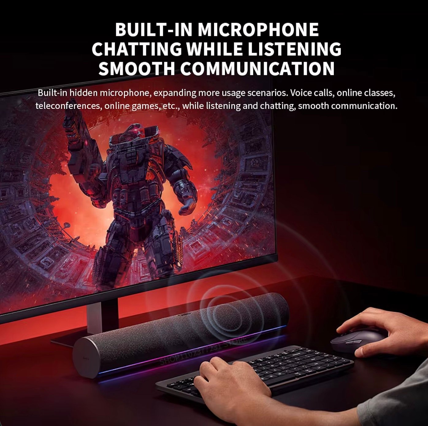 المزود بصوت ستيريو ثنائي القناة وإضاءة RGB تفاعلية. مثالي للموسيقى، الألعاب، والأفلام، يتيح لك التحكم الكامل في الصوت مع تصميم مبتكر يضفي لمسة جمالية على مكتبك.