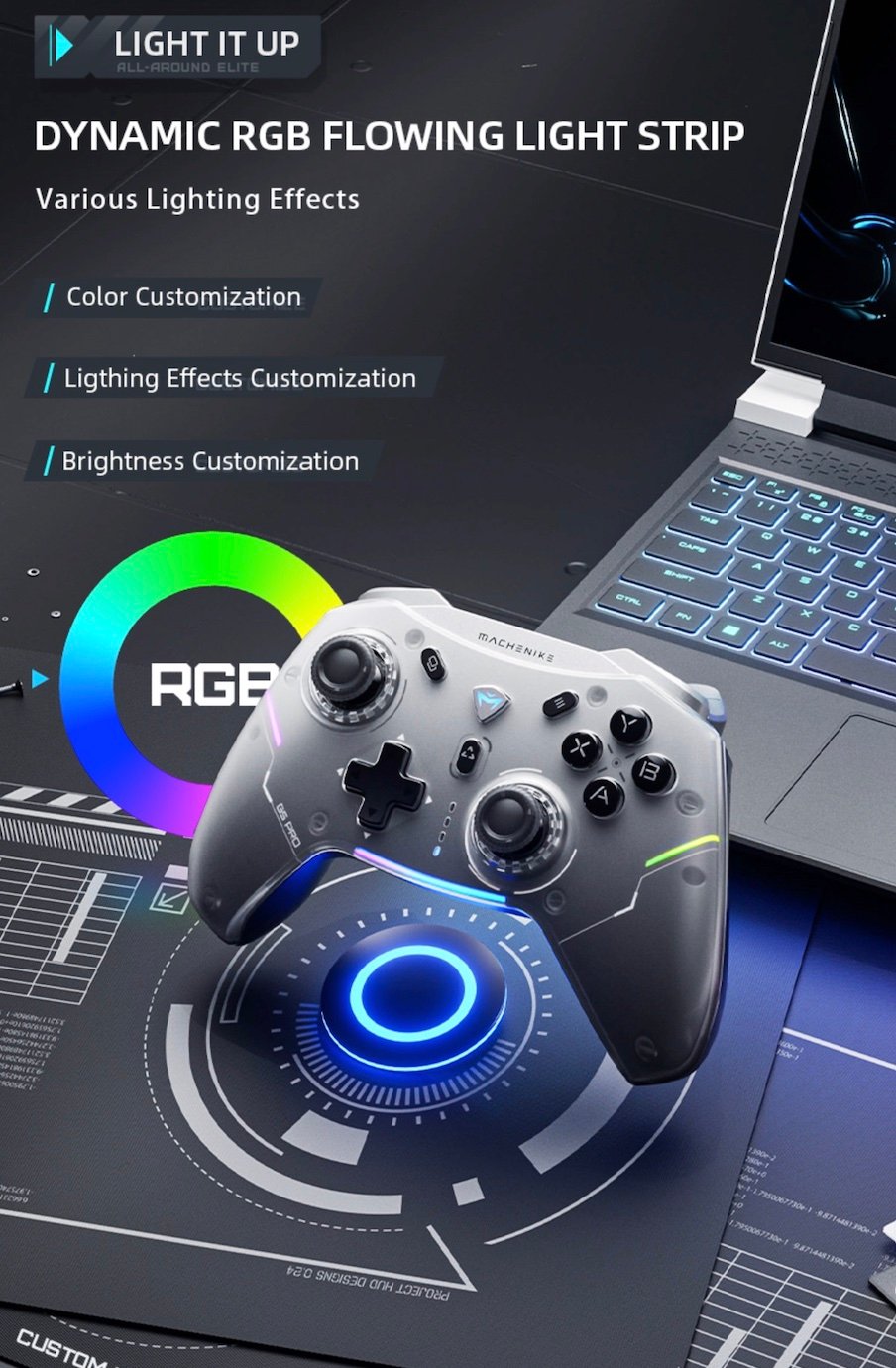 وحدة التحكم اللاسلكية المتقدمة التي تمنحك دقة لا مثيل لها واستجابة فائقة. مع أزرار لمسية ميكانيكية، عصا تحكم حساسة لتأثير القاعة، وأضواء RGB قابلة للتخصيص، ستشعر وكأنك داخل اللعبة تمامًا، سواء على الكمبيوتر، Nintendo Switch، الهواتف الذكية، أو أجهزة Android TV.